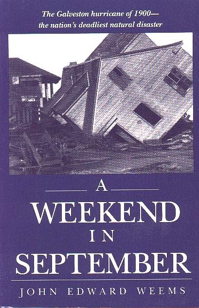 College Station: Texas A & M, 1999. Reprint. 180 pages. Paperback. 0890963908 0-89096-390-8. Weem's account of the great Galveston Storm of 1900 in which over 6,000 people lost their lives. One of the most historically accurate accounts. B/w photos, indexed. Reprint of the c.1959/c.1980 book.